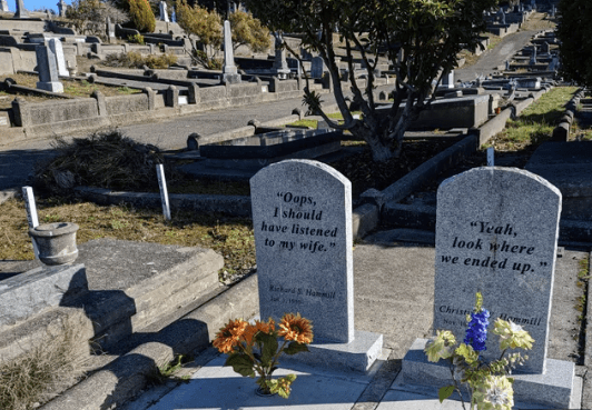 Photo of Richard and Christine Hammills gravestone. Photographer unknown. If this is your photo or you know who the photographer is, please contact me for proper photo credit.