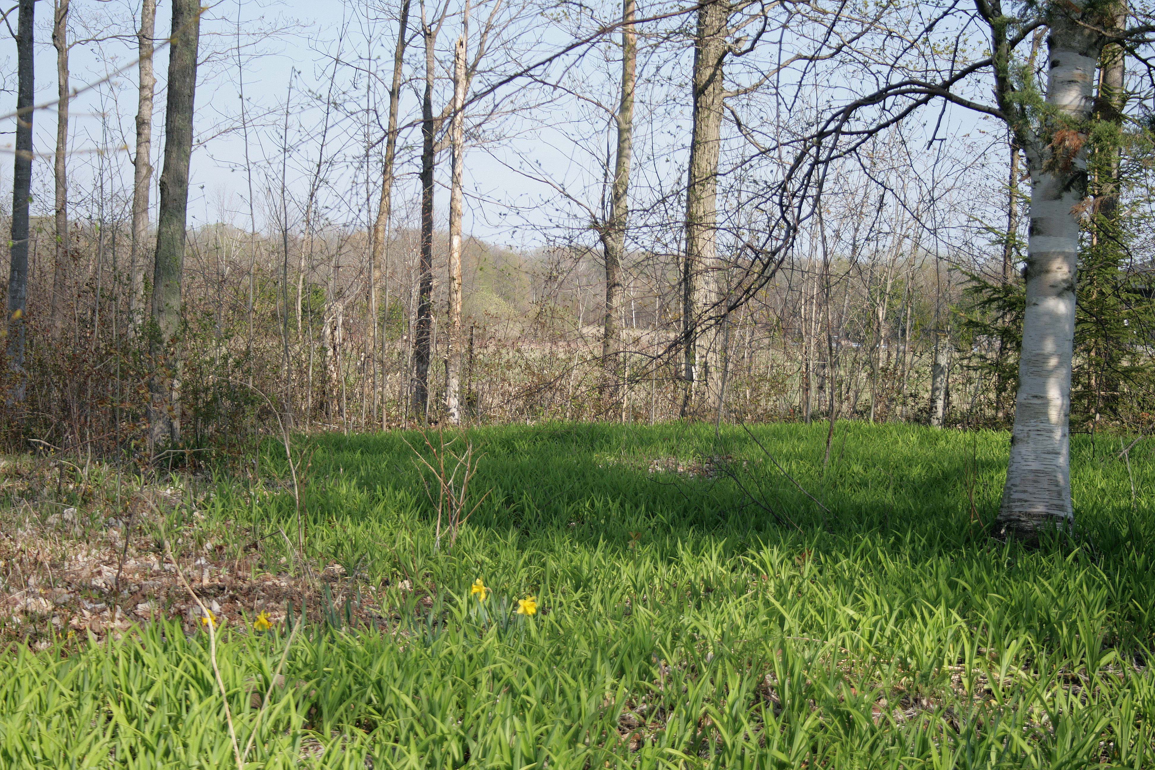 This was my first time visiting a cemetery with no visible headstones. The absence of stones gave the place a sombre feeling, and the forested area behind the church presented a mystery. How far does the burial ground go? I found myself looking closely at the landscape and noticing little details like yellow daffodils in bloom. Could they be marking a grave?