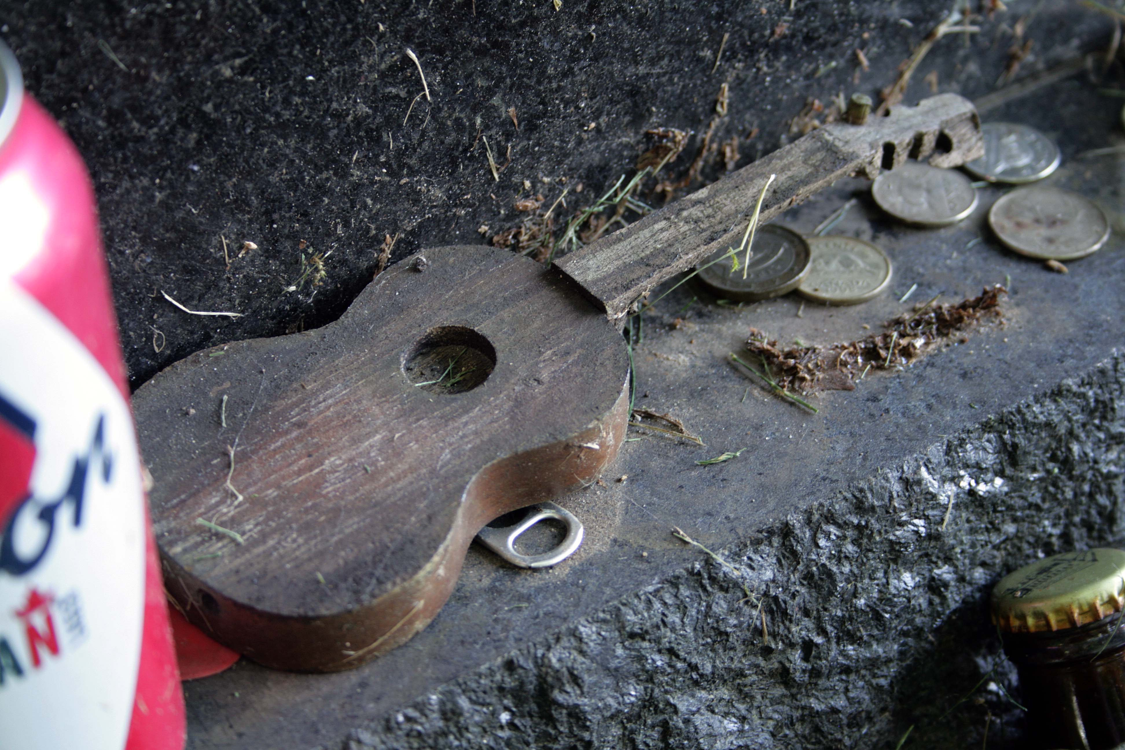 What really caught my attention were the items people had left behind. There was an assortment of coins and small stones, some inscribed with place names like P.E.I. and Timmins, which made it feel like visitors were leaving a piece of where they came from. There was also a small wooden guitar, a bottle opener, and a guitar pick, among other things. Each item felt intentional, like a quiet nod to who he was and the stories he told through his music.