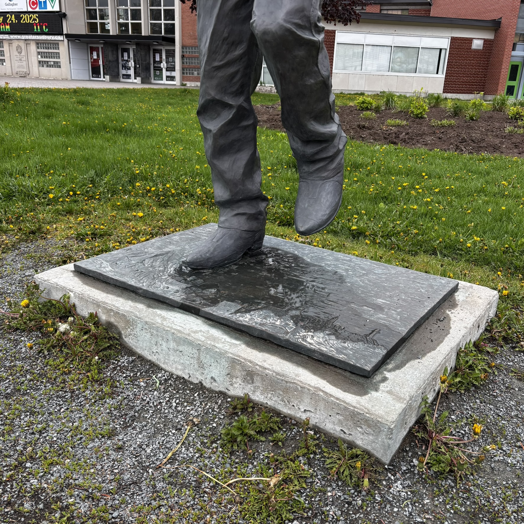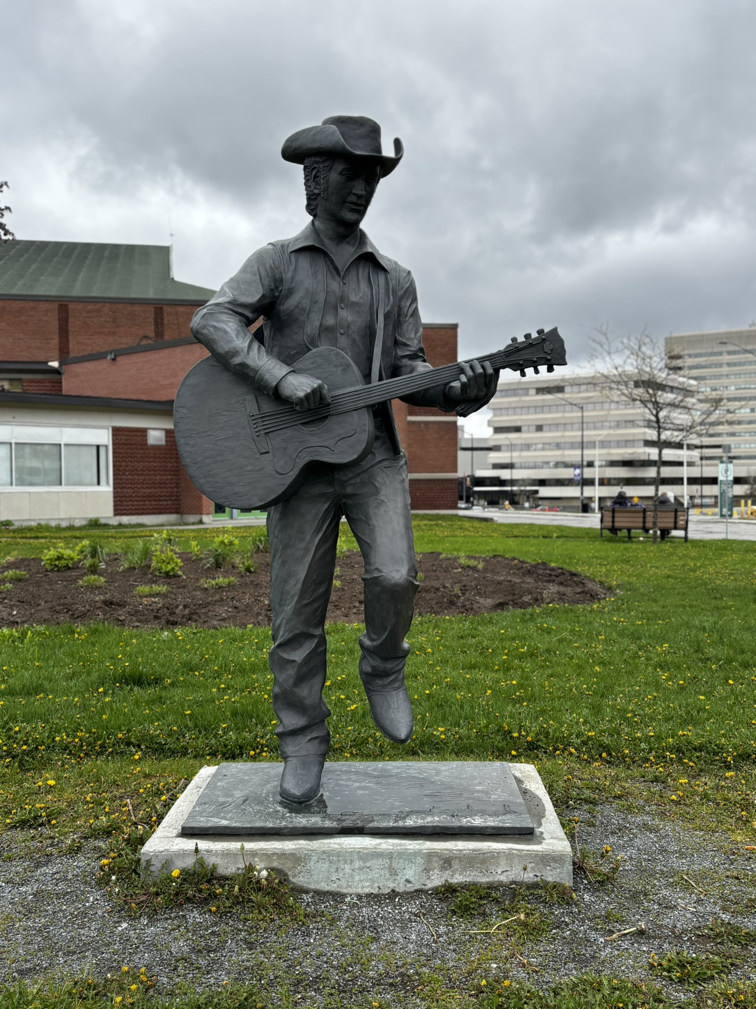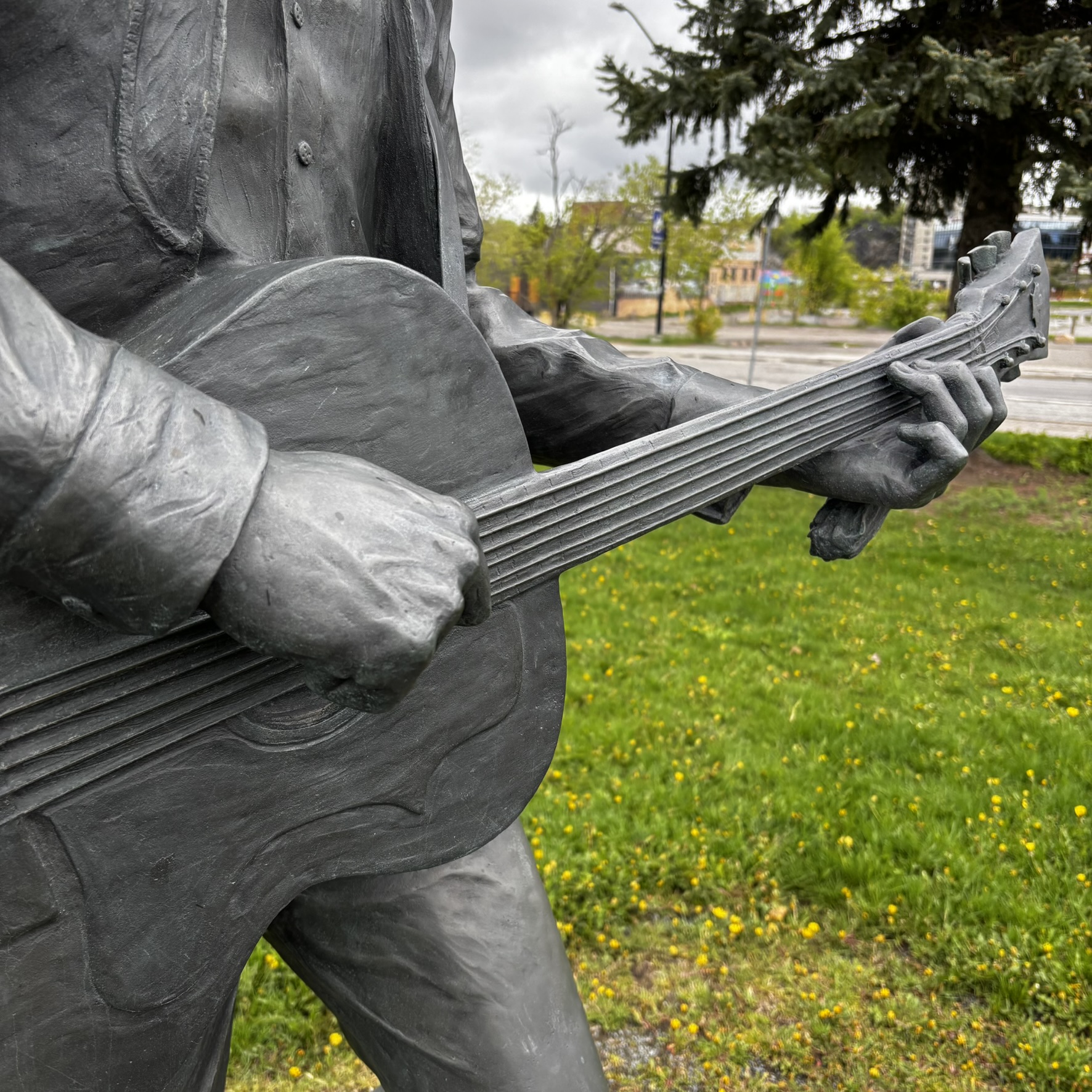 That connection is also visible in the bronze statue of Stompin’ Tom outside the Sudbury Community Arena. The statue, sculpted by Tyler Fauvelle, captures him mid-performance.6 His left hand is positioned for a C chord, one of the main chords used in Sudbury Saturday Night.10 It reflects how deeply his music has become part of the city’s identity and landscape.