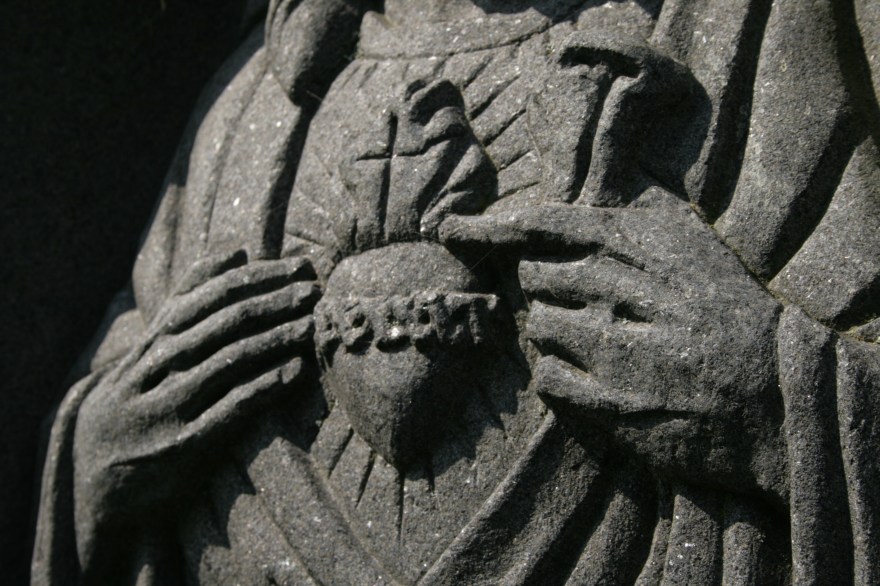 On some Catholic graves, you’ll see a heart surrounded by thorns and topped with a cross. This Sacred Heart is a reminder of Christ’s sacrifice and devotion, showing love and faith in a very visual way.
