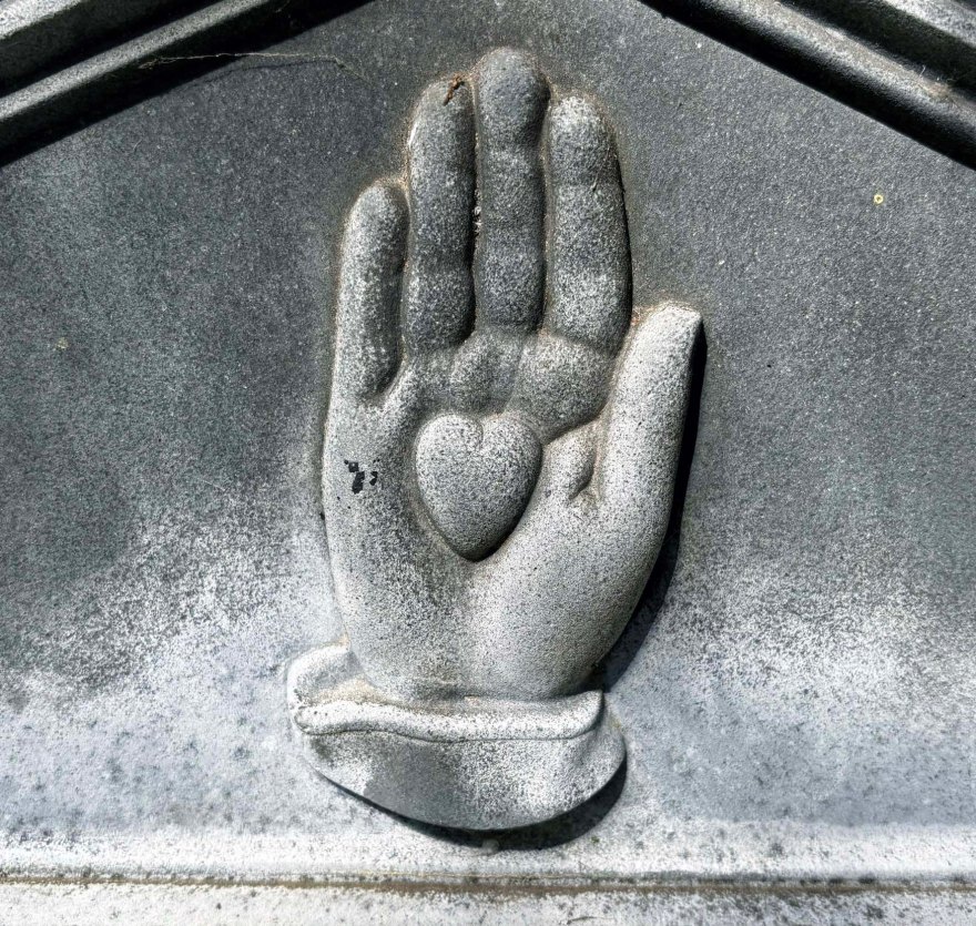The heart in a hand is a symbol often found on Odd Fellows graves. It represents giving from the heart, showing love, kindness, and helping others. It’s a visual reminder of the values the group shares.