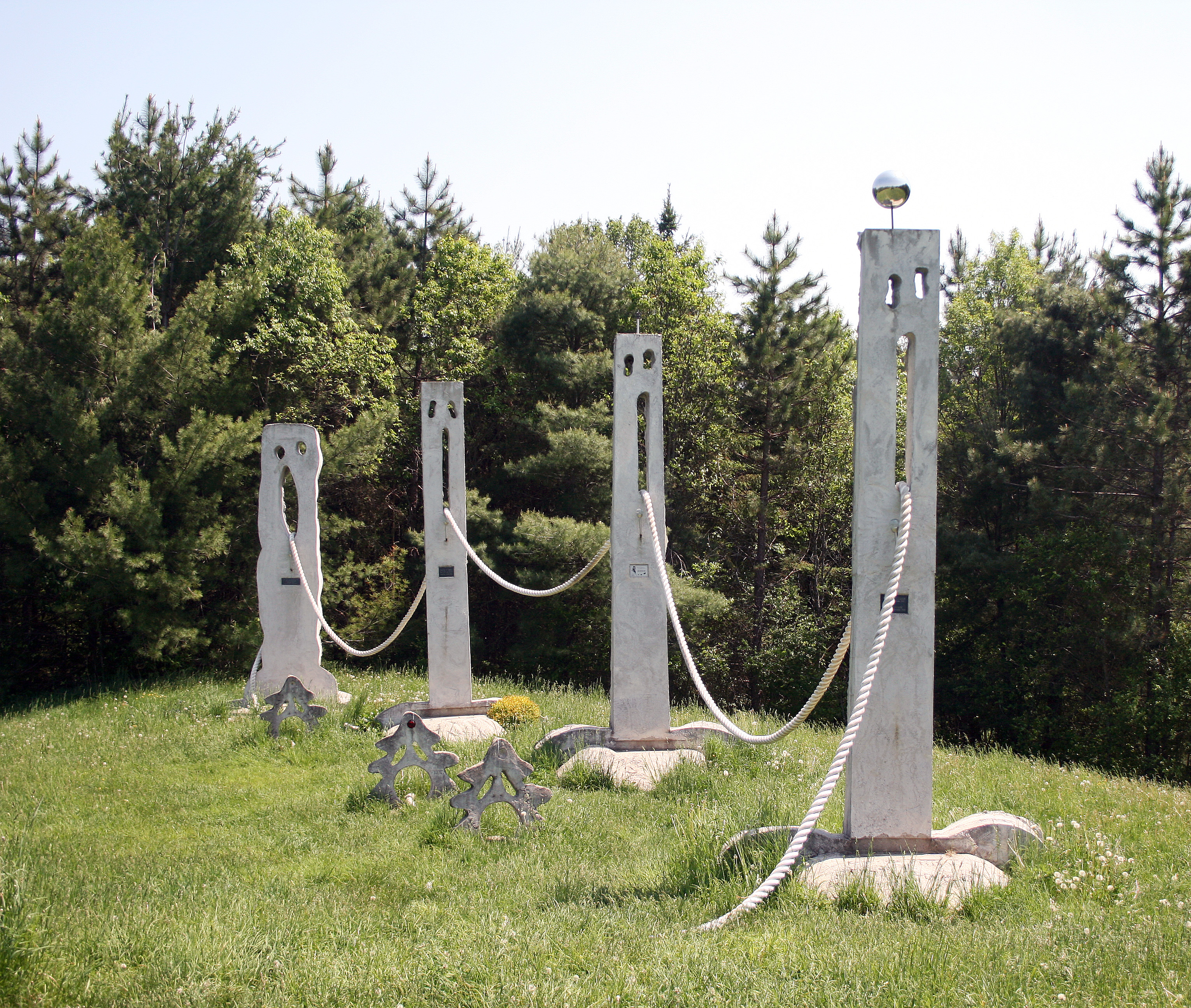 After that somber visit, I thought it might be a good idea to visit something a little more hopeful. The Walkerton Heritage Water Garden features a waterfall that gushes out from a crack in a large rock formation. It’s inspired by the biblical story of Moses, who struck a rock in the desert to bring water to the Israelites.6 It represents water as a positive symbol of life, healing and renewal. The waterfall pours into a small pond that is surrounded by a larger walking trail. There are benches and small clusters of flowers and tall grass that dot the path that leads you back to the memorial fountain.
