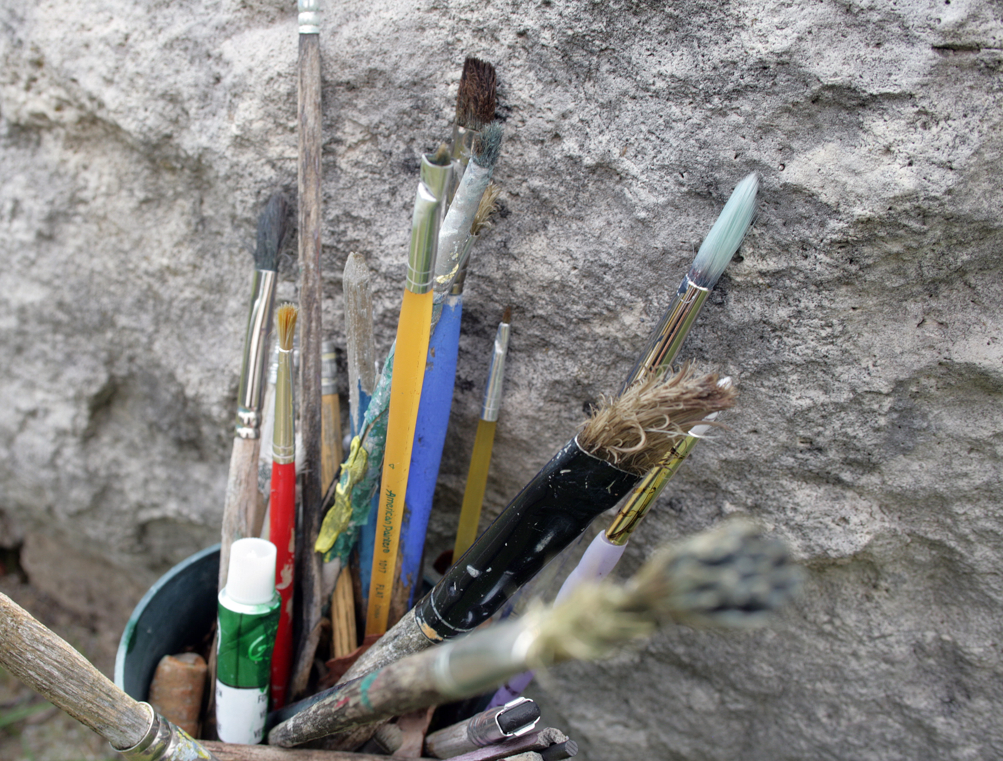 We had a beautiful day for a graveyard stroll, the day we visited the churchyard. It wasn’t hard to find the Thomson family plot at all. There are historical plaques and signs to direct you right to it. The graveyard itself is a decent size, but not big enough to get lost in. We could see right away that Thomson was still very popular as there were many grave goods left at his graveside, including a cup filled with paintbrushes, and a lovely rock painting of Thomson. The base of his gravestone is filled with stones, coins, and other items left by those who have come to pay their respects.