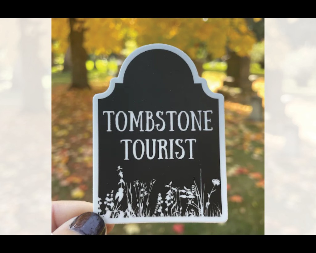This vinyl sticker is a fun way to show your love for all things cemetery-related. It is waterproof, scratch-resistant, and sturdy enough for cars, water bottles, or any surface you feel like decorating. The design is perfect for anyone who proudly identifies as a taphophile.