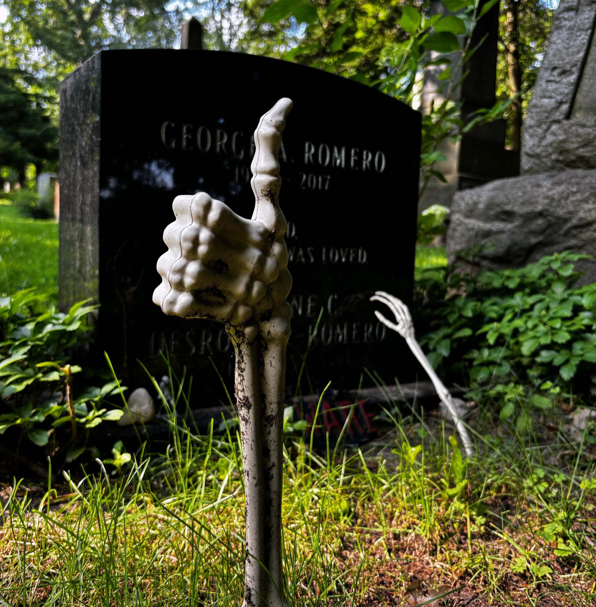 This horror classic was written and directed by George Romero, the father of zombie films. This summer, I had the chance to visit the final resting place of this iconic director.