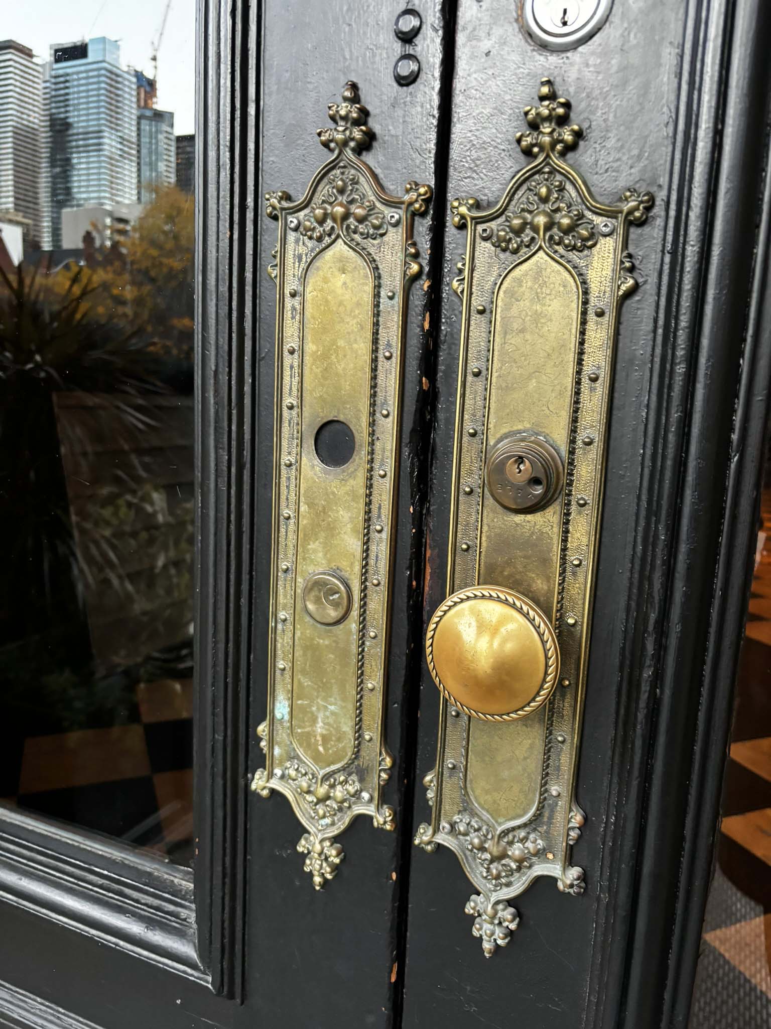 I peeked inside and admired the beautiful stained glass, in the small sepulchre. The shaft of light coming from the stained glass windows in the ceiling lit the inside of the tomb just enough to make out the nameplates marking the shelves within the crypt. It felt like a special privilege to be able to see inside this final resting place of such a prominent Toronto family.